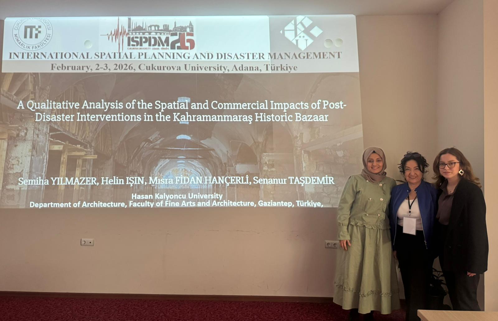 Uluslararası Mekânsal Planlama ve Afet Yönetimi Kongresi Etkinlik Tarih & Saat: Şubat 2 - 3, 2026 Yer: Çukurova Üniversitesi Türü Kongre Konu Uluslararası Mekânsal Planlama ve Afet Yönetimi Kongresi Katılımcı(lar) Prof. Dr. Semiha Yılmazer, Arş. Gör. Helin Işın, HKÜ GSMF Mimarlık ABD Öğrencileri Düzenleyen Çukurova Üniversitesi Mimarlık Fakültesi