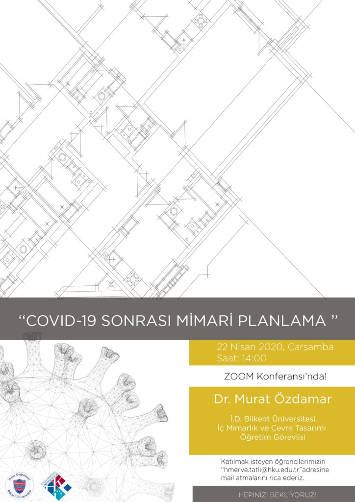 COVID-19 SONRASI MİMARİ PLANLAMA KONFERANSI Nisan 15, 2020 Kategori: İlanlar COVID-19 SONRASI MİMARİ PLANLAMA KONFERANSI için yorumlar kapalı Katılmak isteyen öğrencilerimizin “hmerve.tatli@hku. edu.tr”adresine mail atmalarını rica ederiz. HEPİNİZİ BEKLİYORUZ!